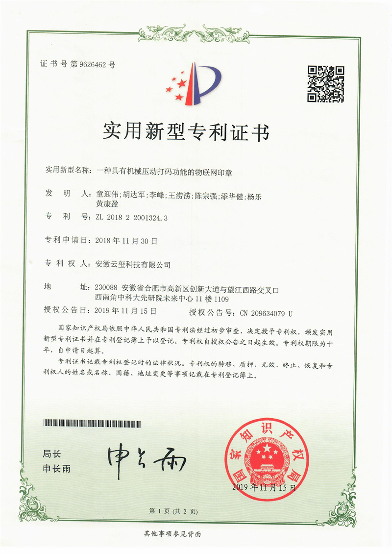 公司原創(chuàng)發(fā)明一體式智能印章技術(shù),引領(lǐng)國內(nèi)外新一代智能印簽創(chuàng)新變革。獲中日韓多項(xiàng)發(fā)明專利,徹底解決了實(shí)體印章和電子印簽管控的社會(huì)難題,獲國務(wù)院國資委全國央企熠星二等獎(jiǎng)。公司聯(lián)合國家信息安全產(chǎn)品認(rèn)證中心、公安部三所、信通院、中國印章協(xié)會(huì)等,主導(dǎo)起草了行業(yè)首個(gè)智能印章安全認(rèn)證標(biāo)準(zhǔn)和智能印章產(chǎn)品標(biāo)準(zhǔn),引領(lǐng)了智能印章行業(yè)發(fā)展。