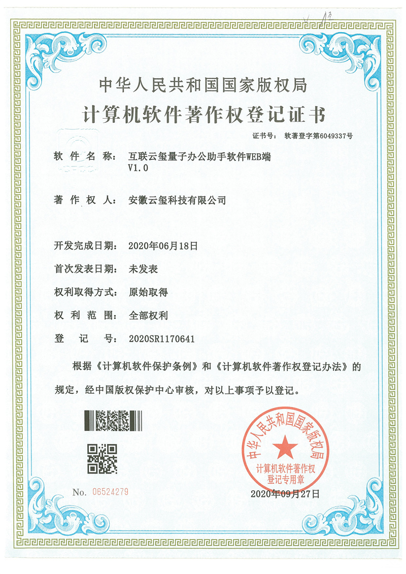 安徽云璽量子科技有限公司是合肥市量子信息產(chǎn)業(yè)重點(diǎn)企業(yè),國家信創(chuàng)工委會(huì)成員企業(yè),中國信創(chuàng)500強(qiáng)企業(yè)。主營業(yè)務(wù)包括量子安全智能印簽、量子安全智能辦公、量子安全云服務(wù),為政企客戶提供量子安全整體解決方案。
